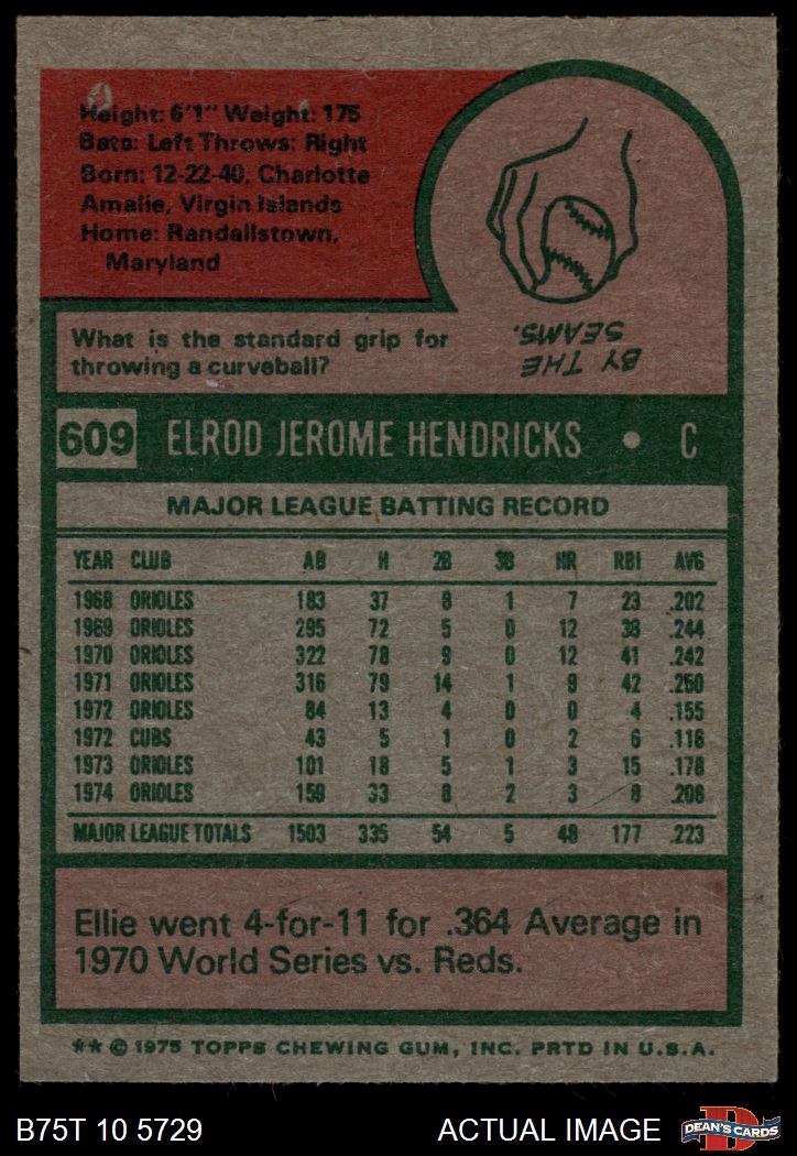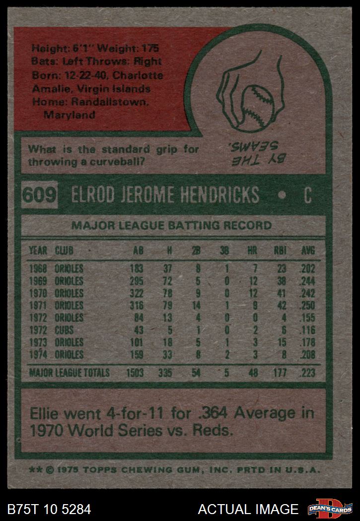 1975 Topps #609 Ellie Hendricks 7 - NM