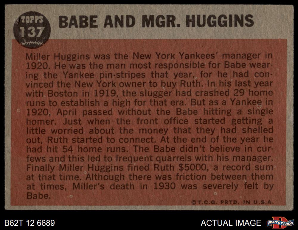 1962 Topps #137 GRN - Babe Ruth / Miller Huggins Babe and Mgr. Huggins 1.5 - FAIR