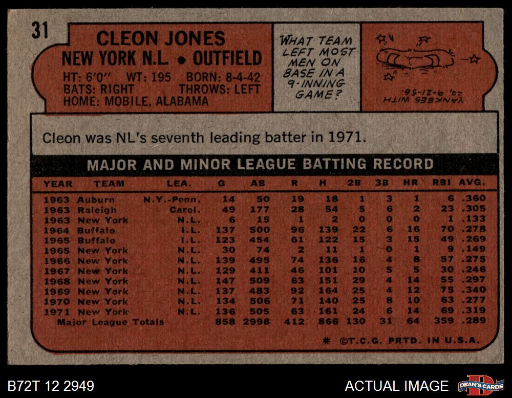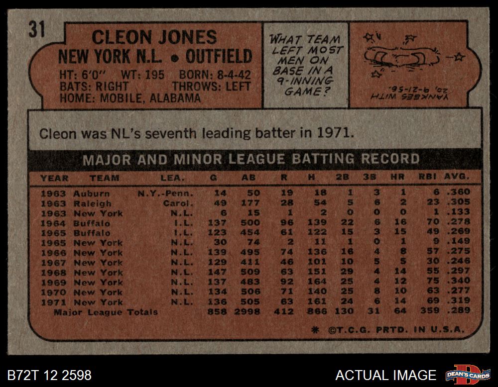 1972 Topps #31 Cleon Jones 3 - VG