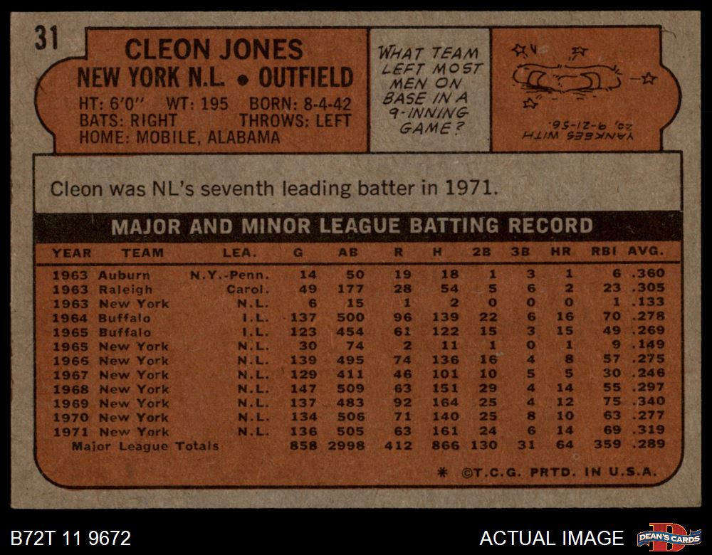 1972 Topps #31 Cleon Jones 4 - VG/EX