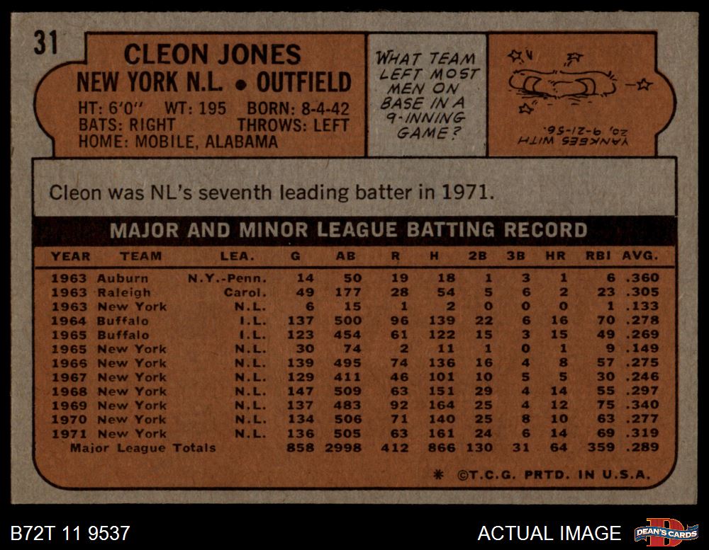 1972 Topps #31 Cleon Jones 4.5 - VG/EX+
