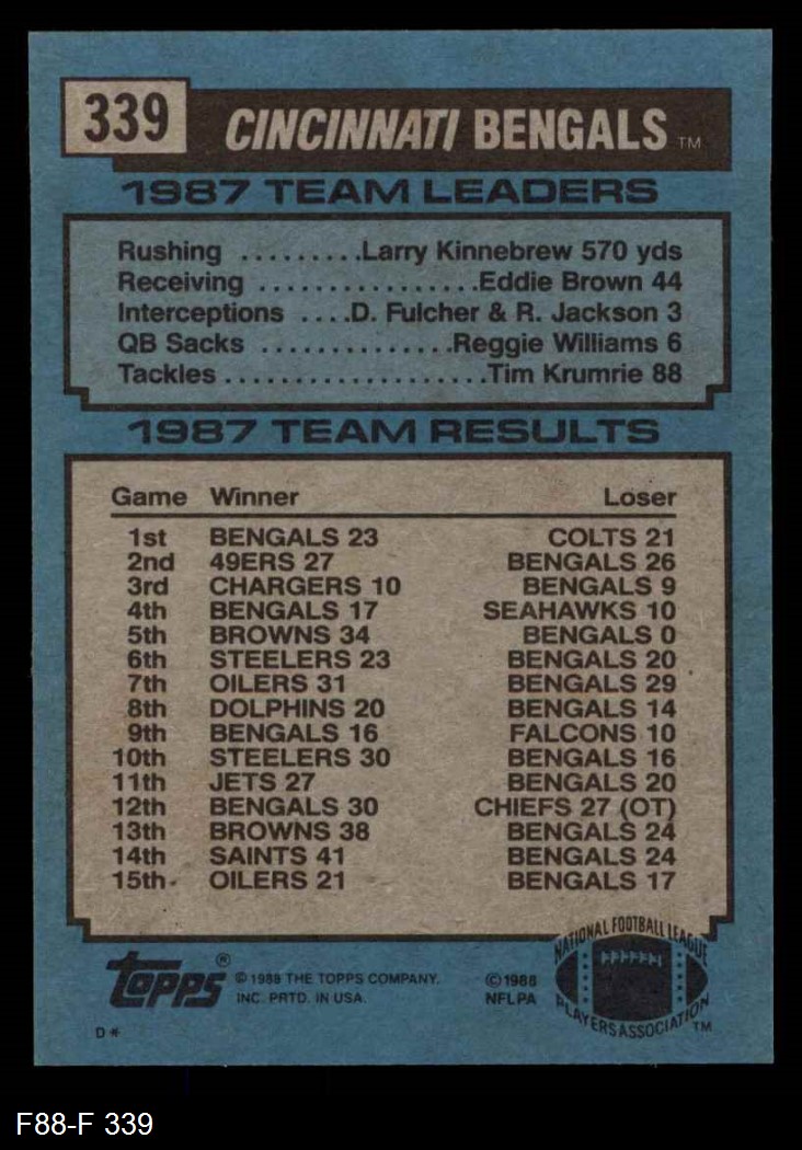 1988 Topps Football Cards (1,797 available)1988 Topps Bengals (31 available)