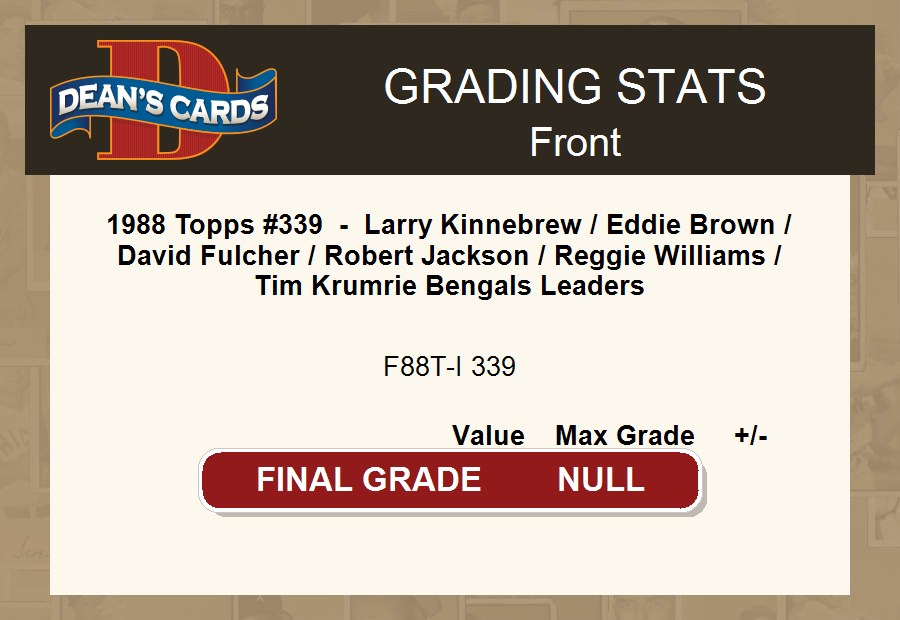 Larry Kinnebrew / Eddie Brown / David Fulcher / Robert Jackson / Reggie Williams / Tim Krumrie (6 available)