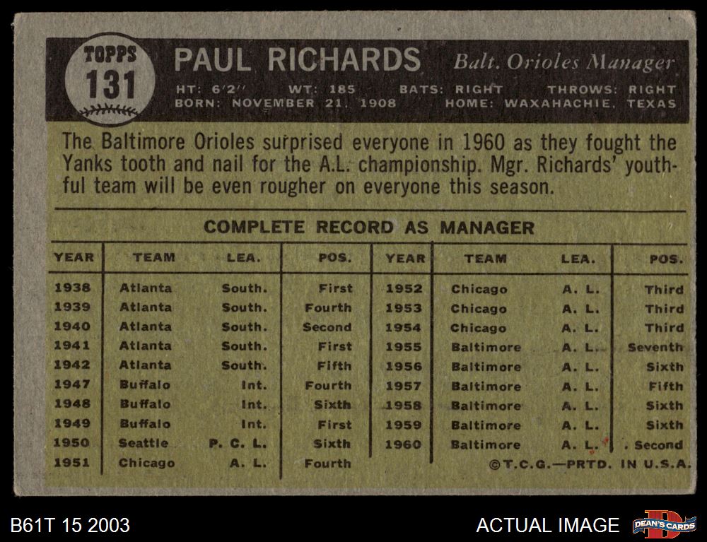1961 Topps Baseball Cards (9,876 available)1961 Topps Orioles (545 available)