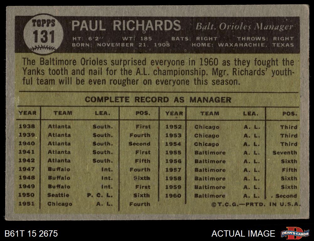 1961 Topps Baseball Cards (9,115 available)1961 Topps Orioles (534 available)