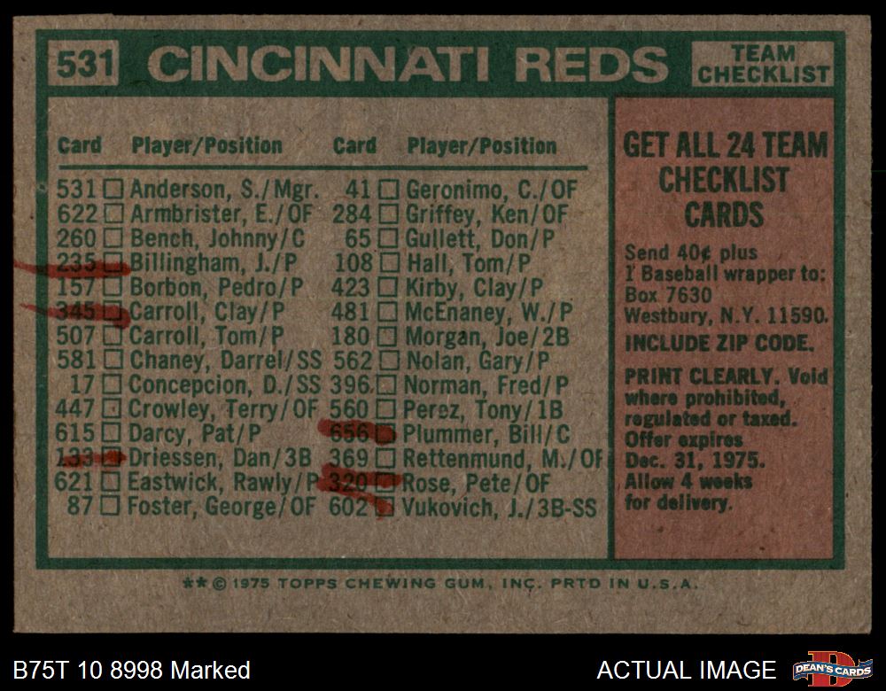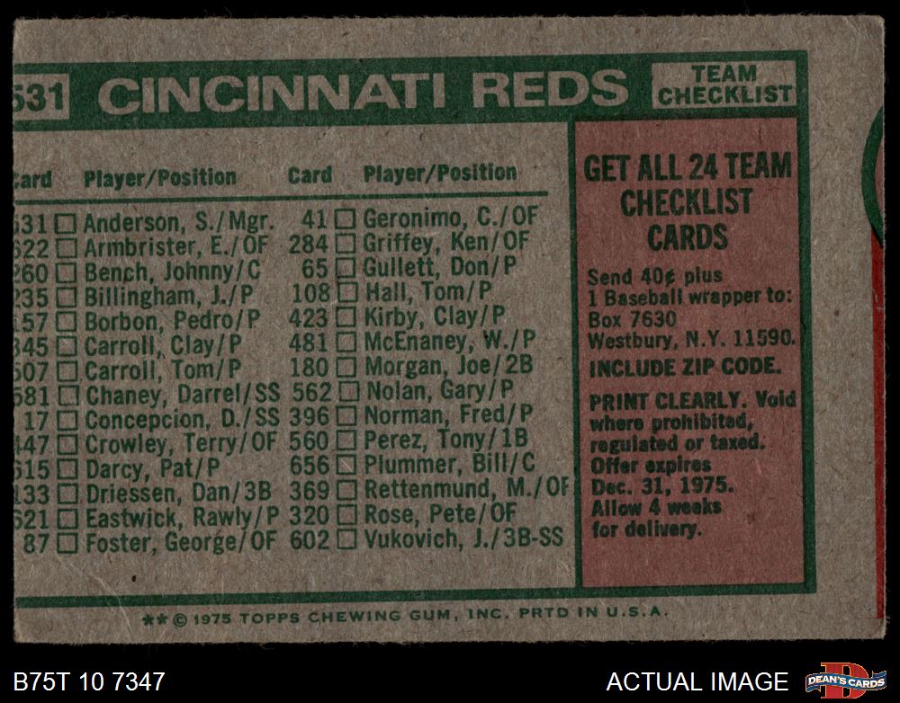 1975 Topps #531 - Sparky Anderson Reds Team Checklist 1.5 - FAIR