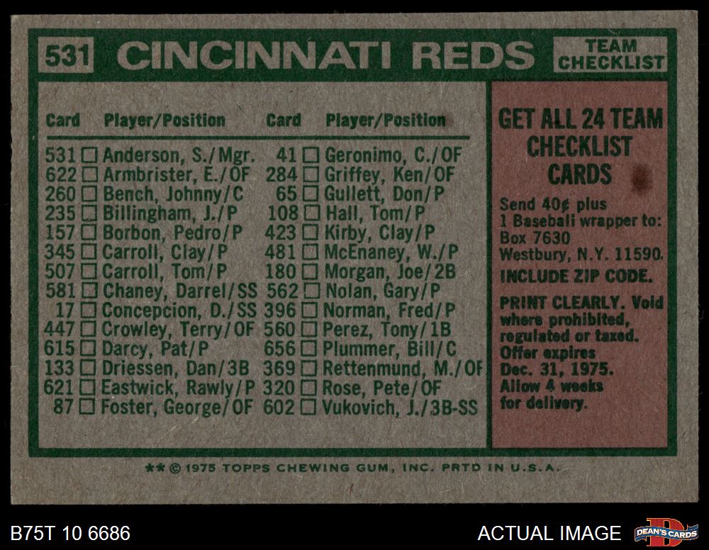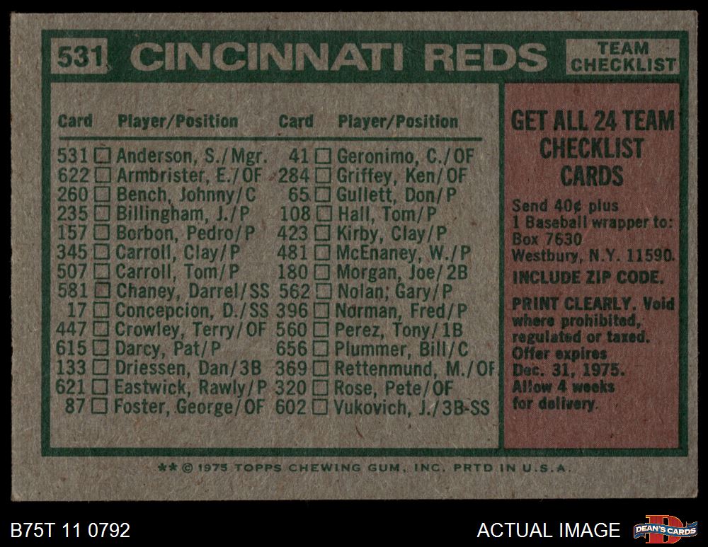 1975 Topps #531 - Sparky Anderson Reds Team Checklist 4 - VG/EX