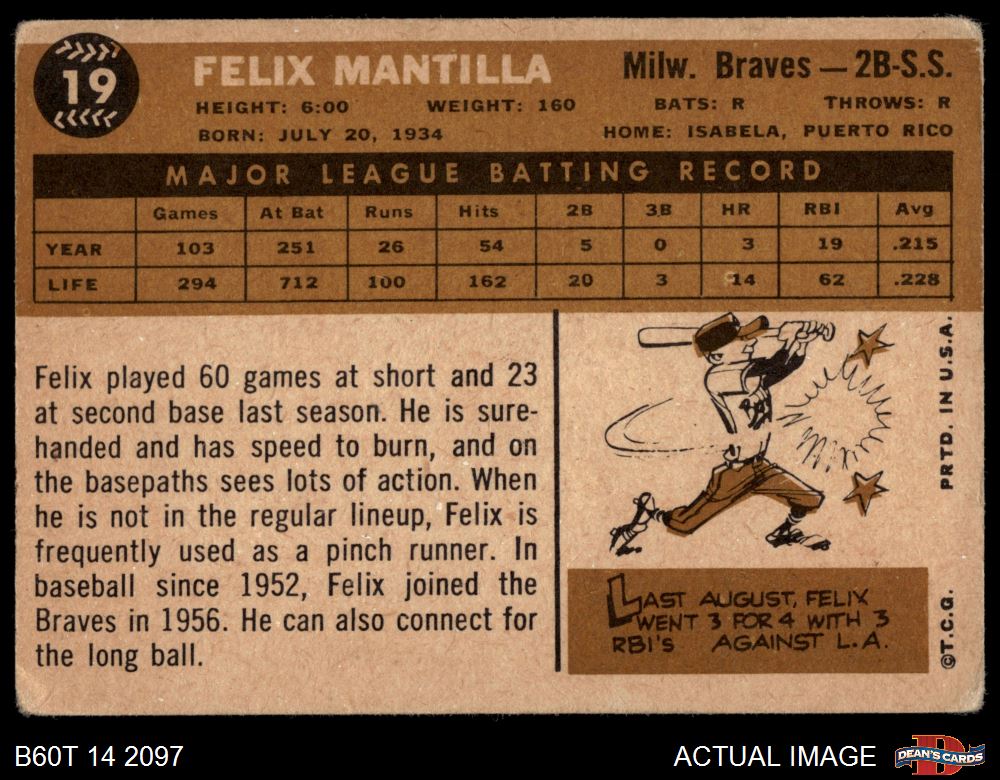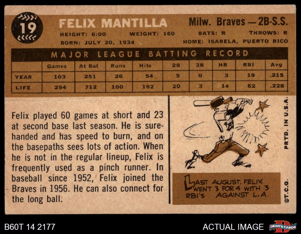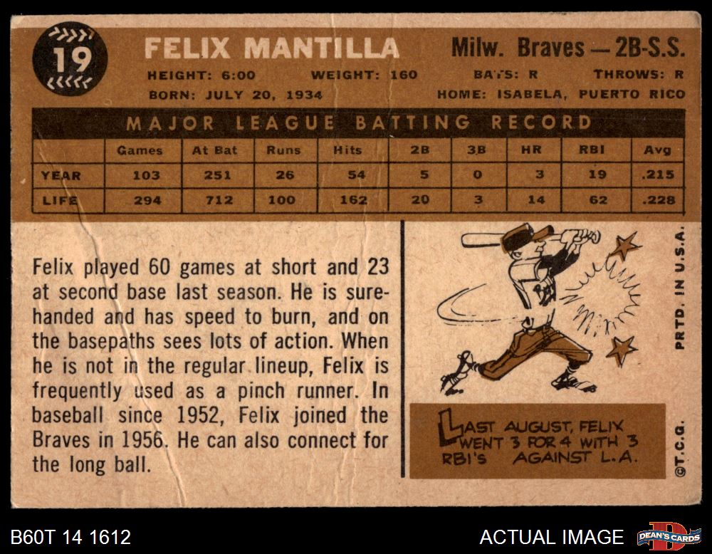 1960 Topps #19 Felix Mantilla 1.5 - FAIR