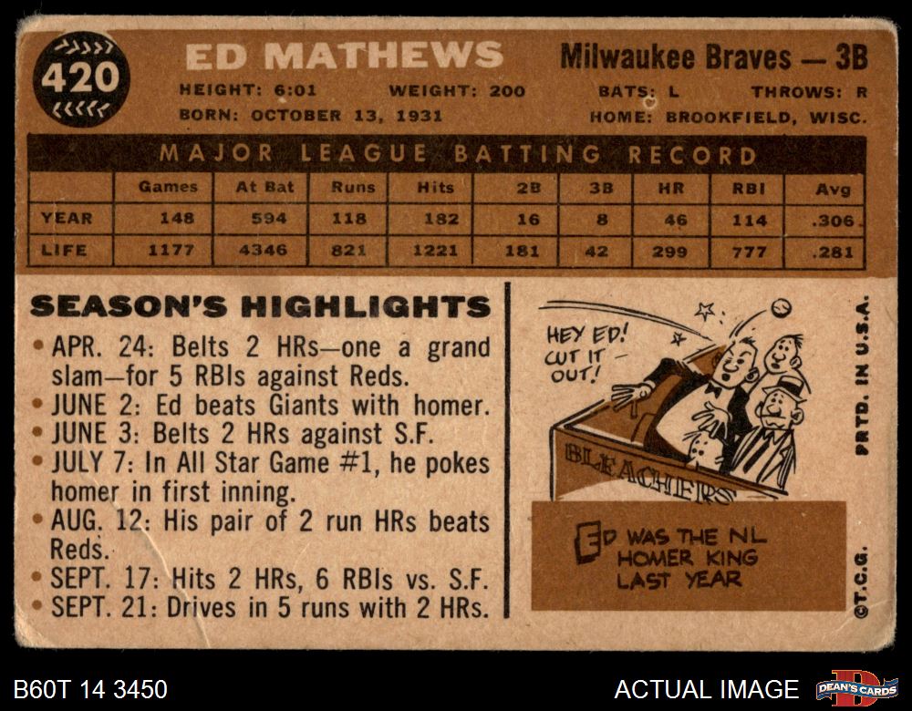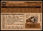 1960 Topps #420 Eddie Mathews
