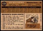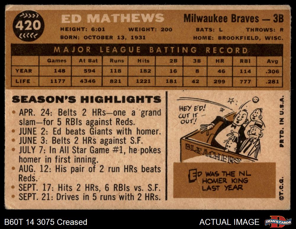 1960 Topps #420 Eddie Mathews Front Thumbnail