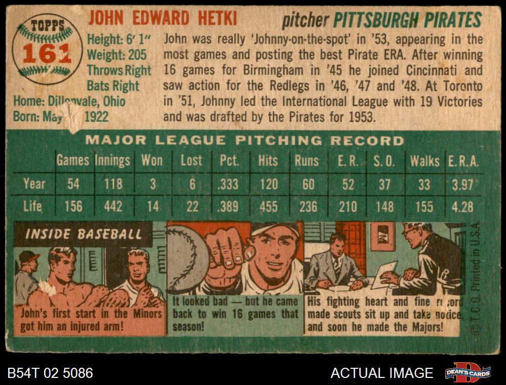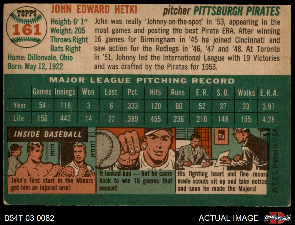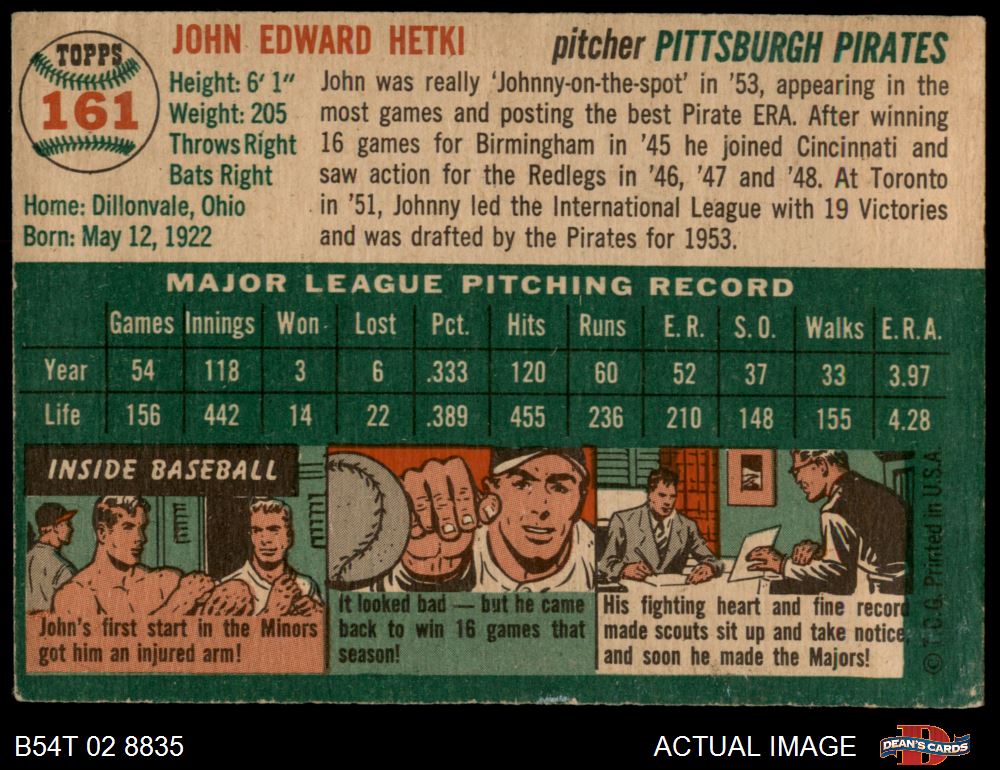 1954 Topps #161 John Hetki
