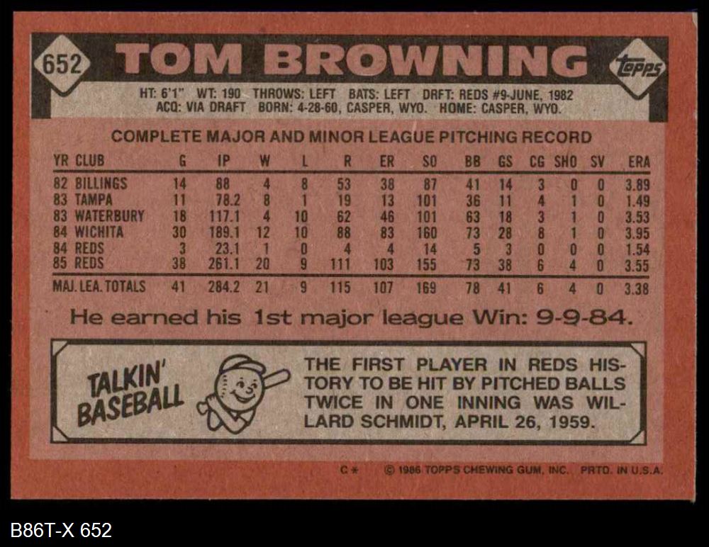 1986 Topps #652 Tom Browning 8 - NM/MT