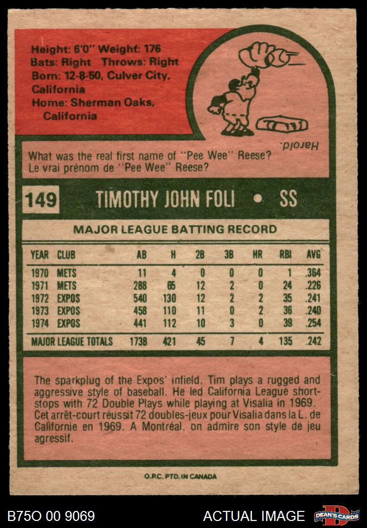1975 O-Pee-Chee #149 Tim Foli 4 - VG/EX