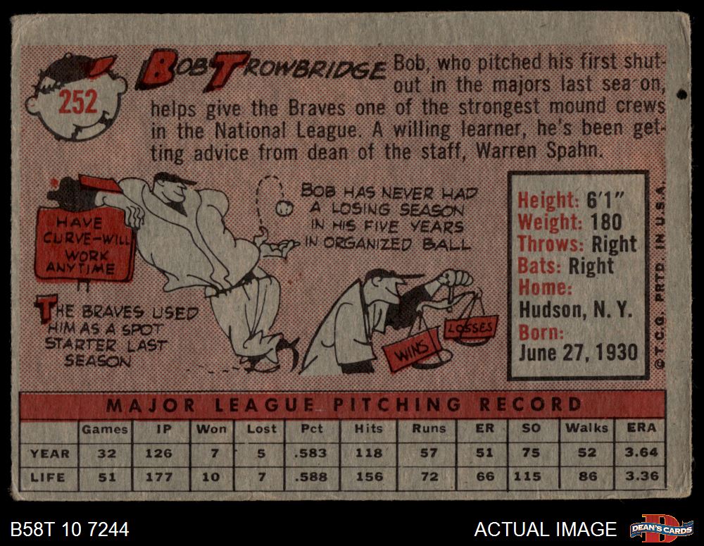 1958 Topps #252 Bob Trowbridge 2 - GOOD