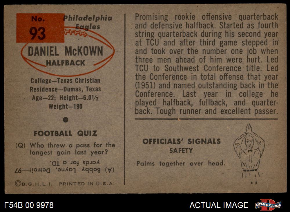 1954 Bowman Football Cards (719 available)1954 Bowman Eagles (100 available)