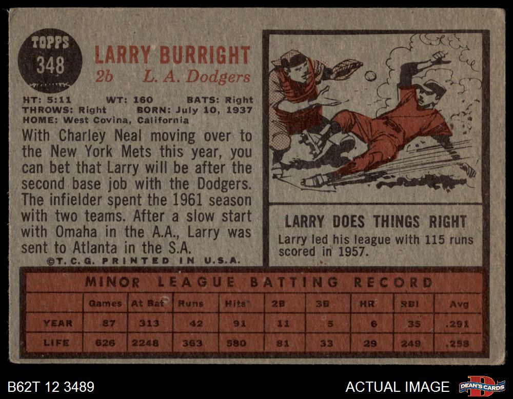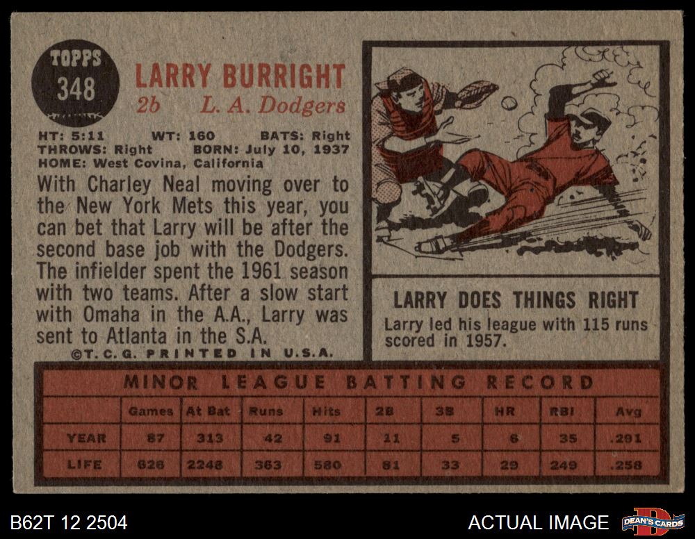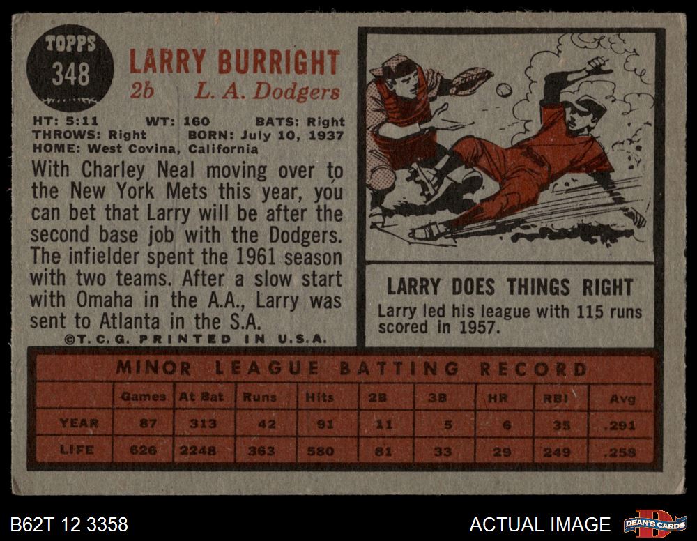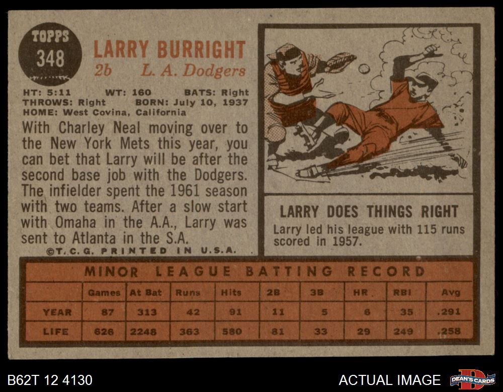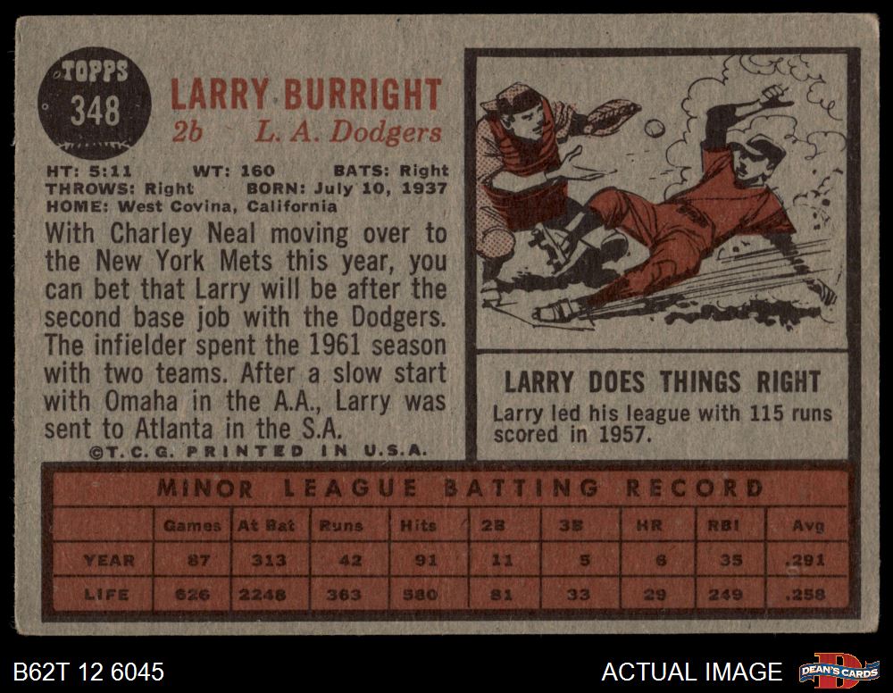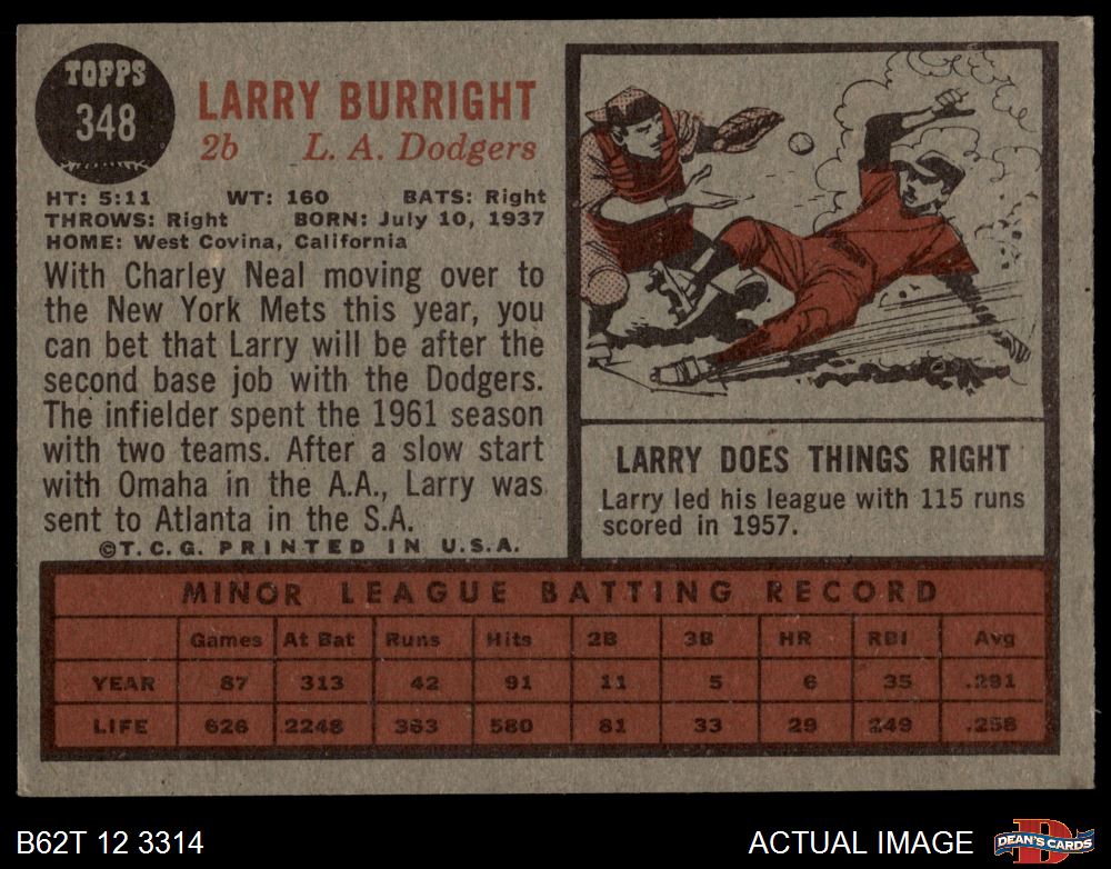 1962 Topps #348 Larry Burright
