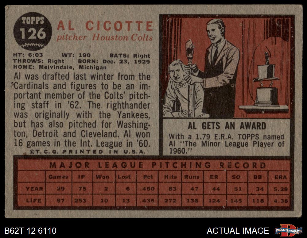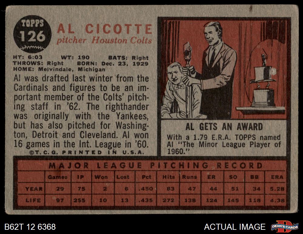 1962 Topps #126 NRM Al Cicotte 1.5 - FAIR