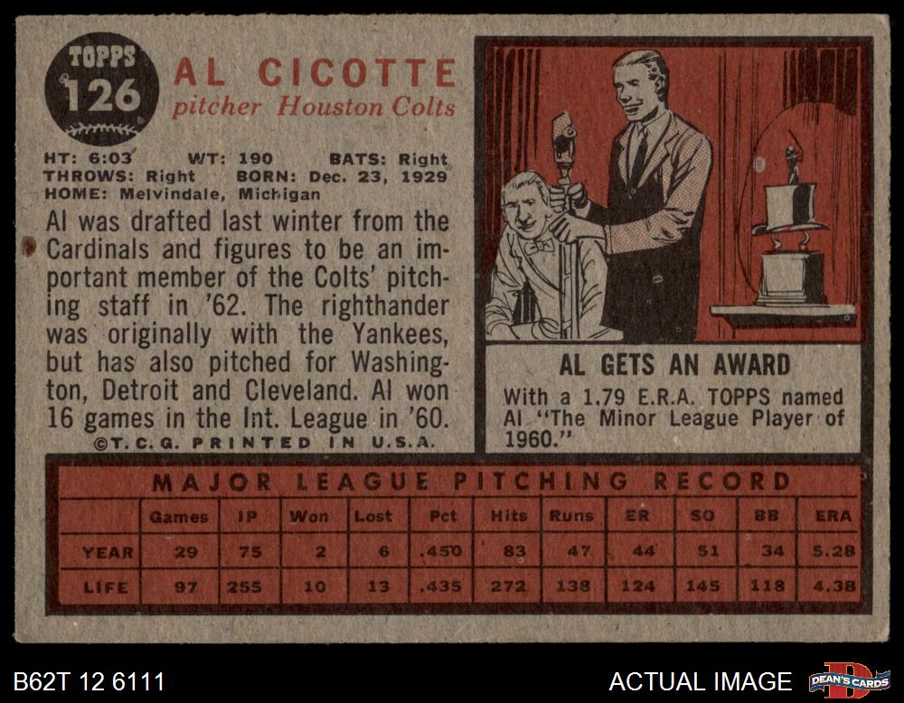 1962 Topps #126 NRM Al Cicotte 2 - GOOD