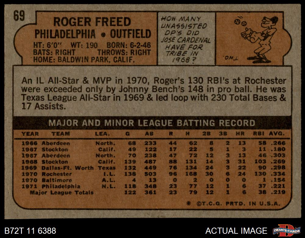 1972 Topps #69 Roger Freed