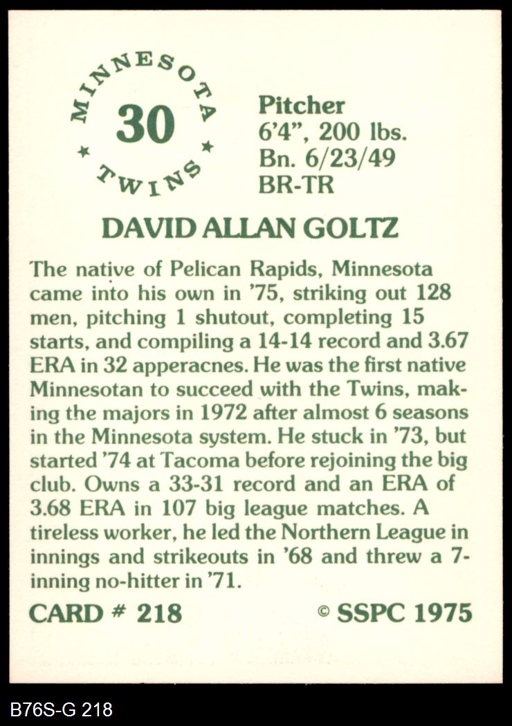 1975 SSPC #218 Dave Goltz