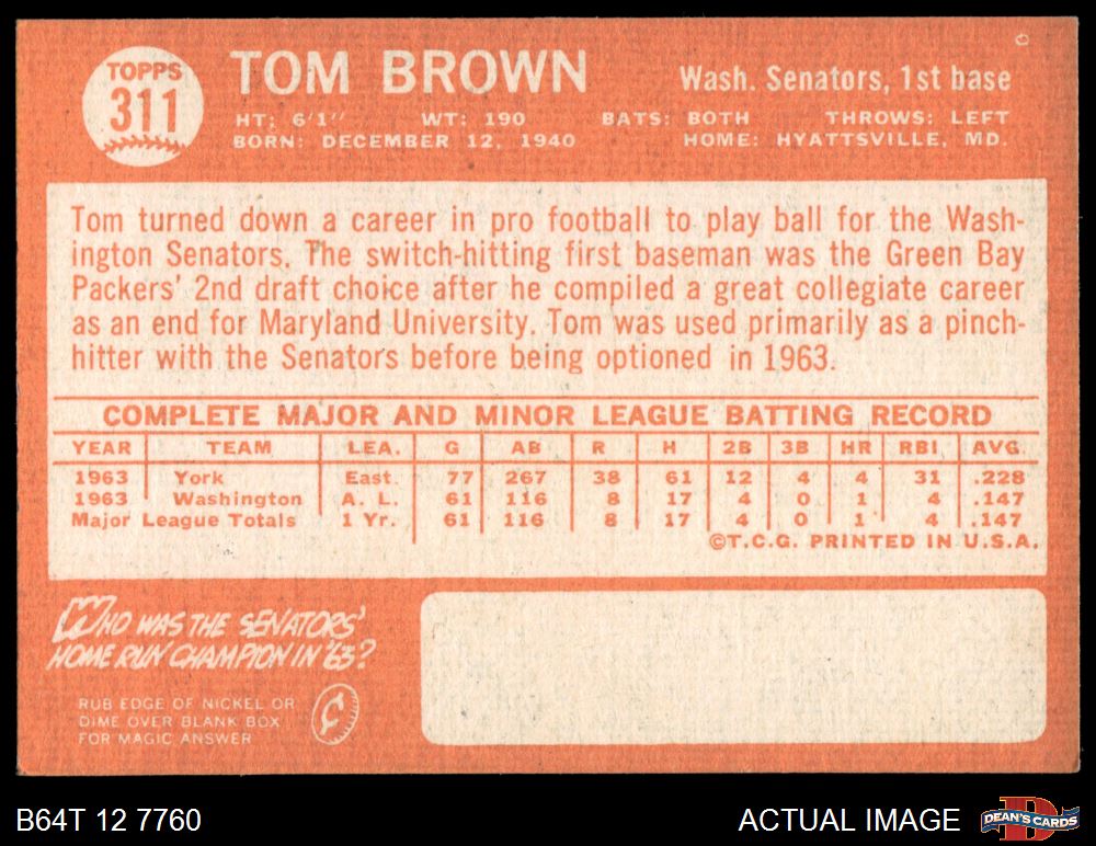 1964 Topps #311 Tom Brown 4.5 - VG/EX+
