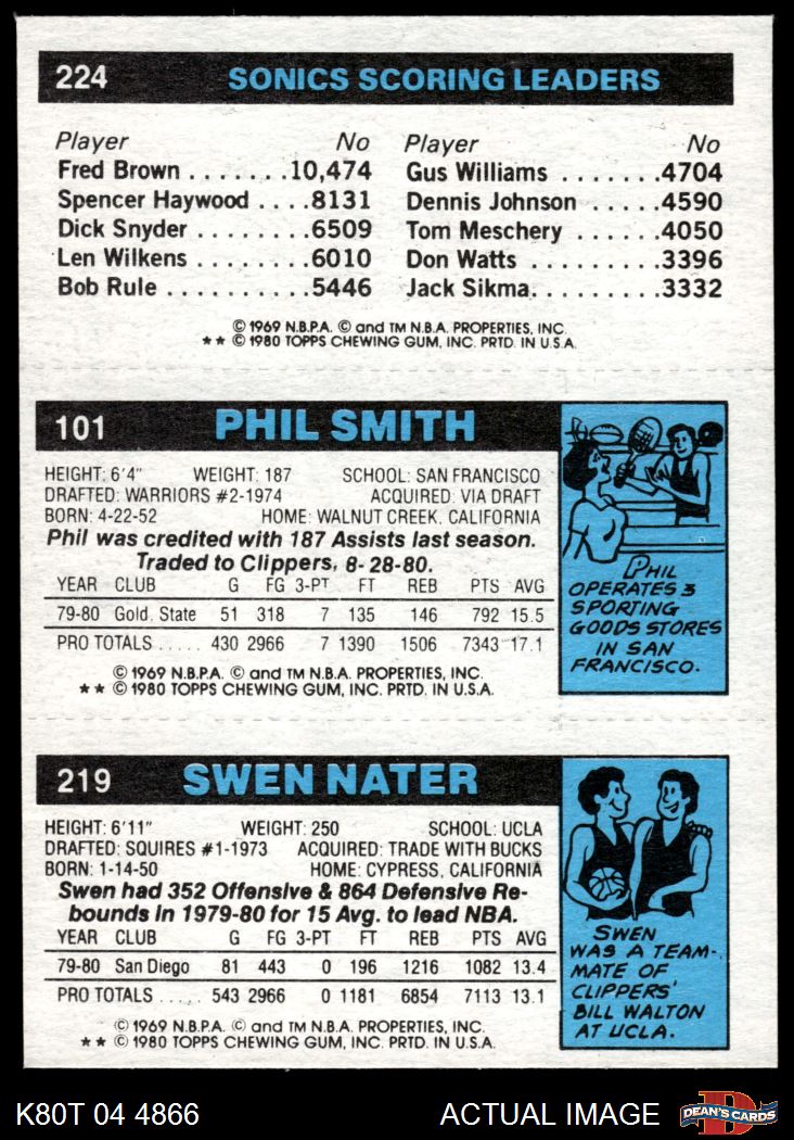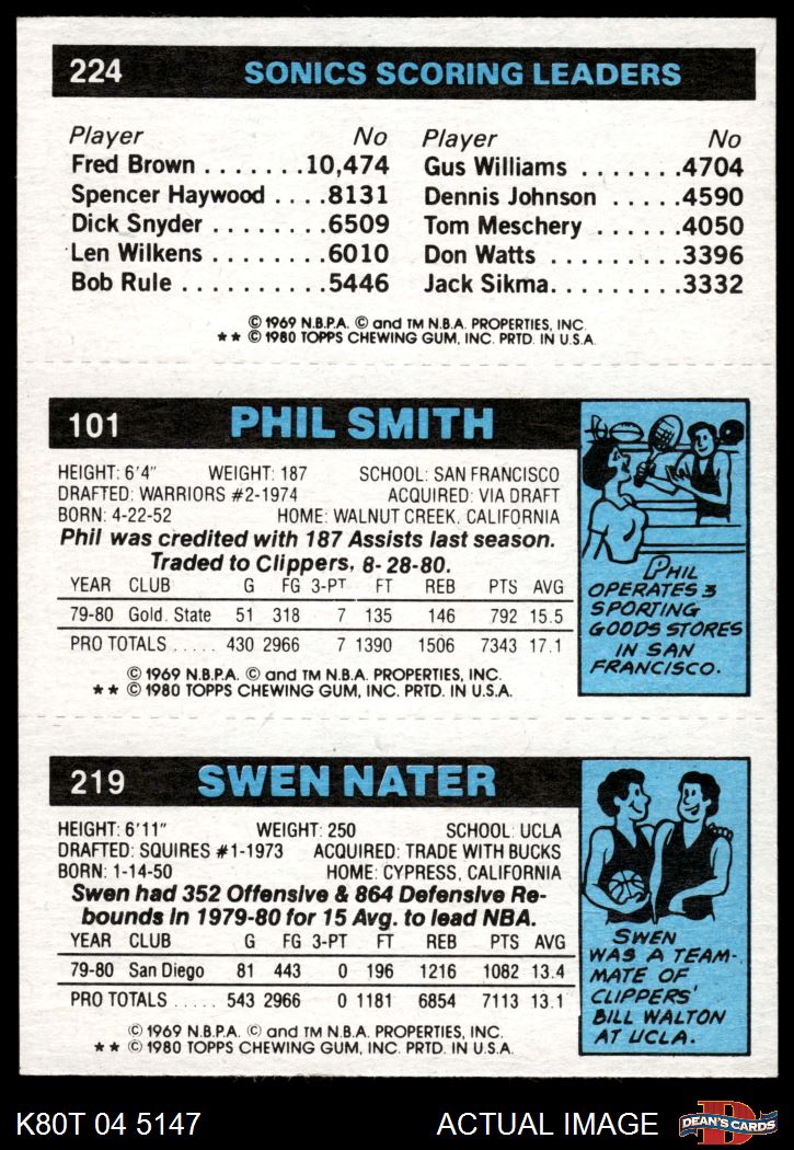 1980 Topps - Swen Nater / Phil Smith / Gus Williams 219 / 101 / 224 8 - NM/MT