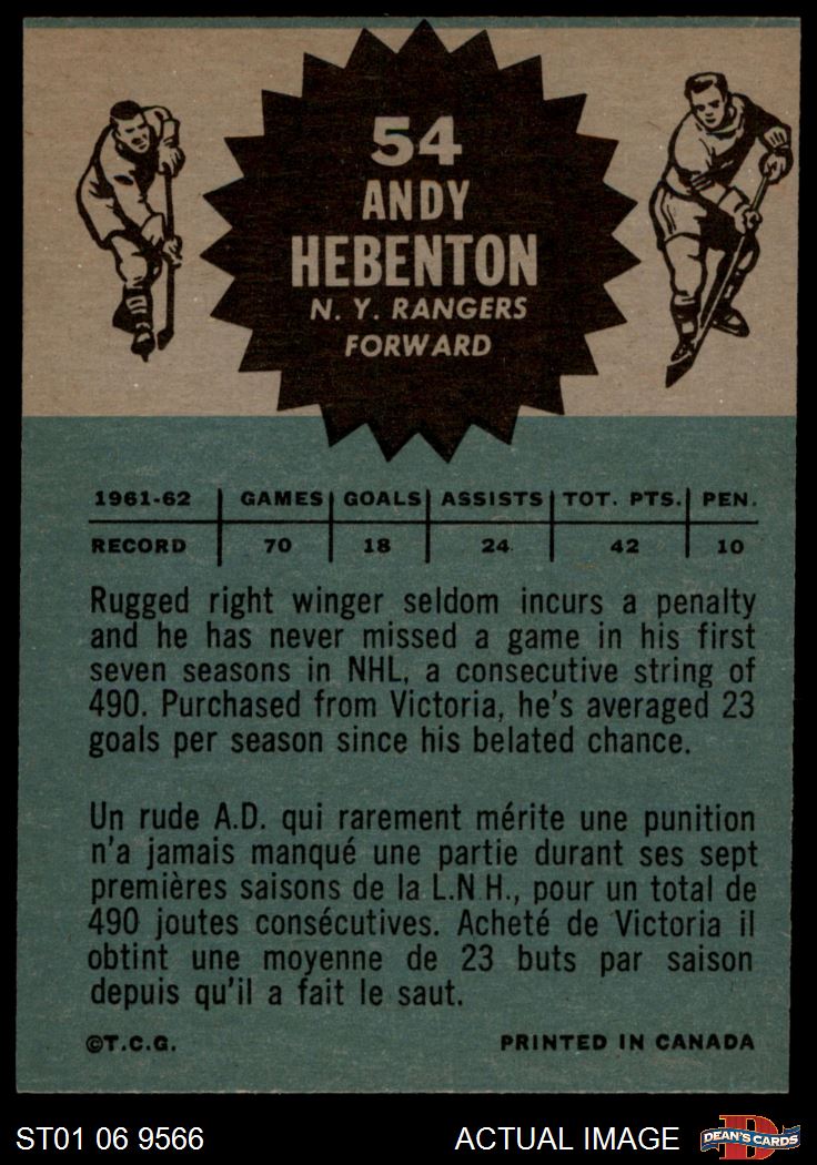 1962 Topps #54 Andy Hebenton 4 - VG/EX