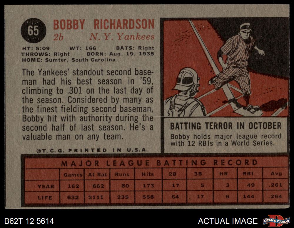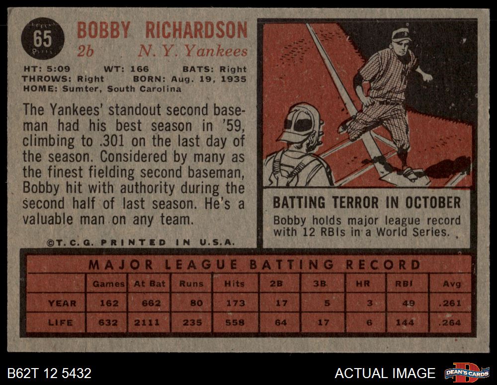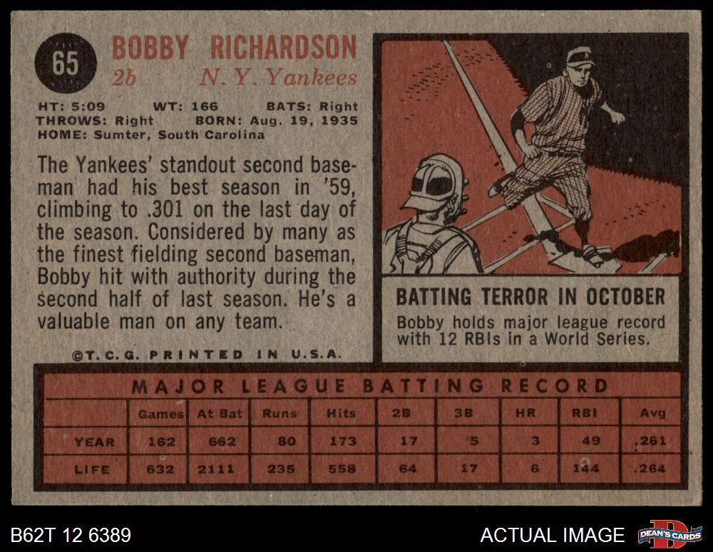 1962 Topps #65 Bobby Richardson