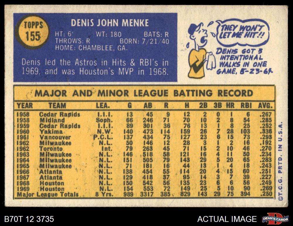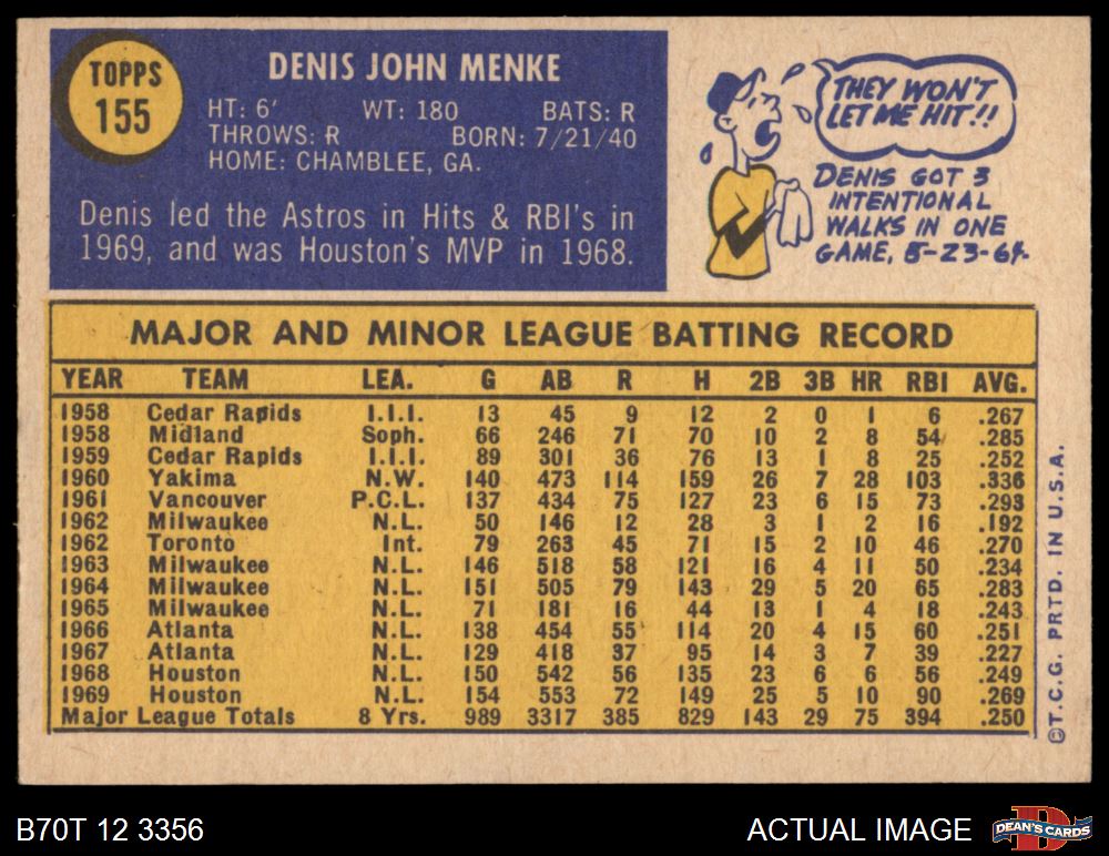 1970 Topps #155 Denis Menke 4 - VG/EX