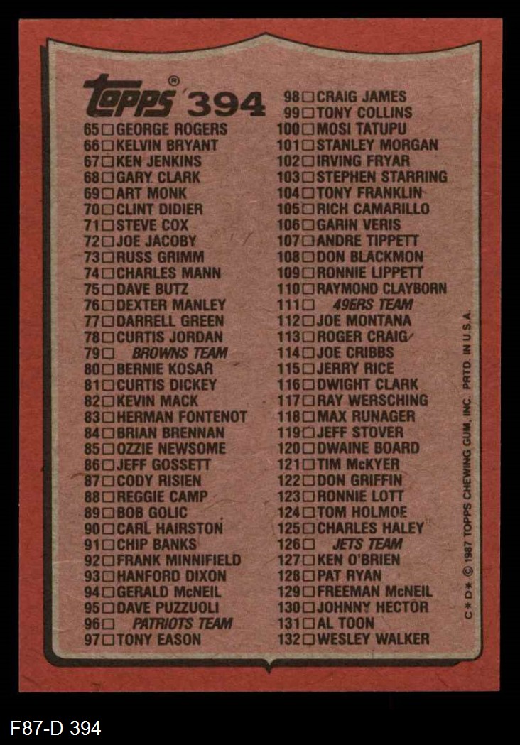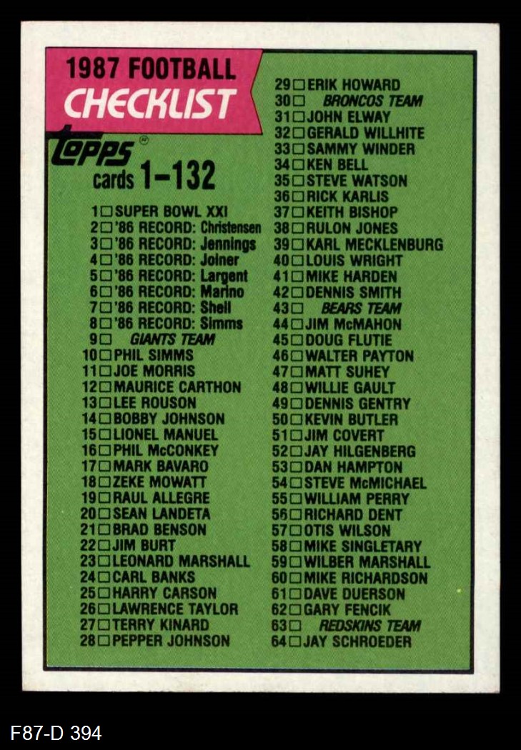 1987 Topps #394 Checklist 1-132 8 - NM/MT
