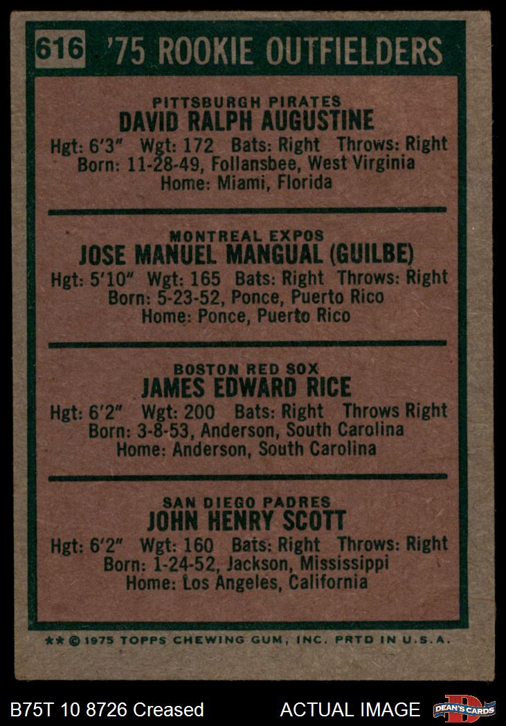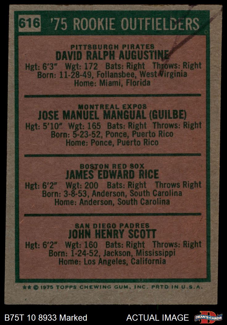 Jim Rice / Dave Augustine / Pepe Mangual / John Scott (22 available)