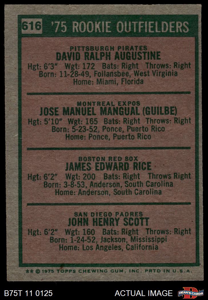 1975 Topps #616 - Jim Rice / Dave Augustine / Pepe Mangual / John Scott Rookie Outfielders 5 - EX