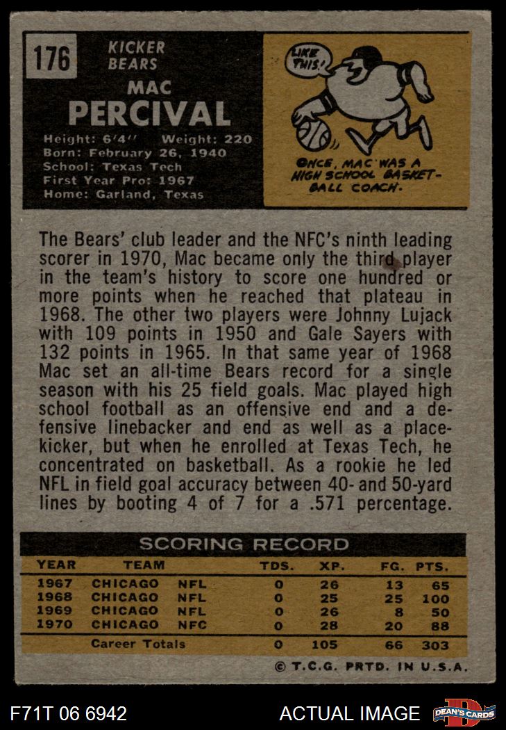 1971 Topps Football Cards (4,319 available)1971 Topps Bears (162 available)