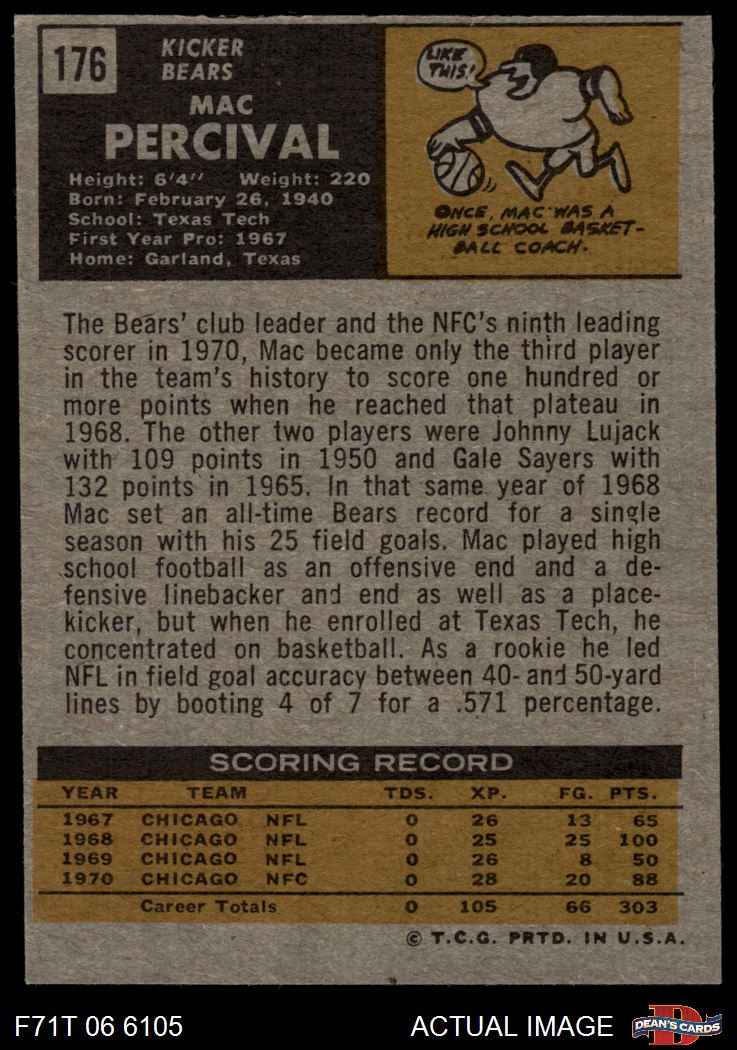 1971 Topps #176 Mac Percival 7 - NM