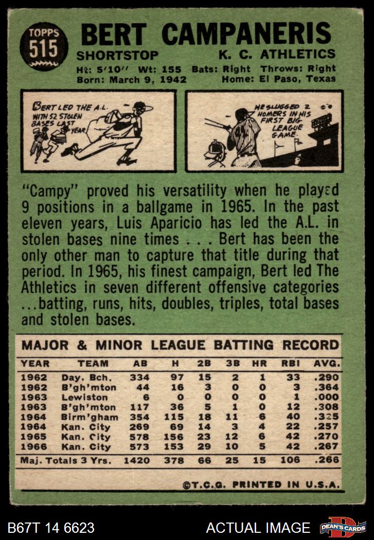 1967 Topps #515 Bert Campaneris 3 - VG