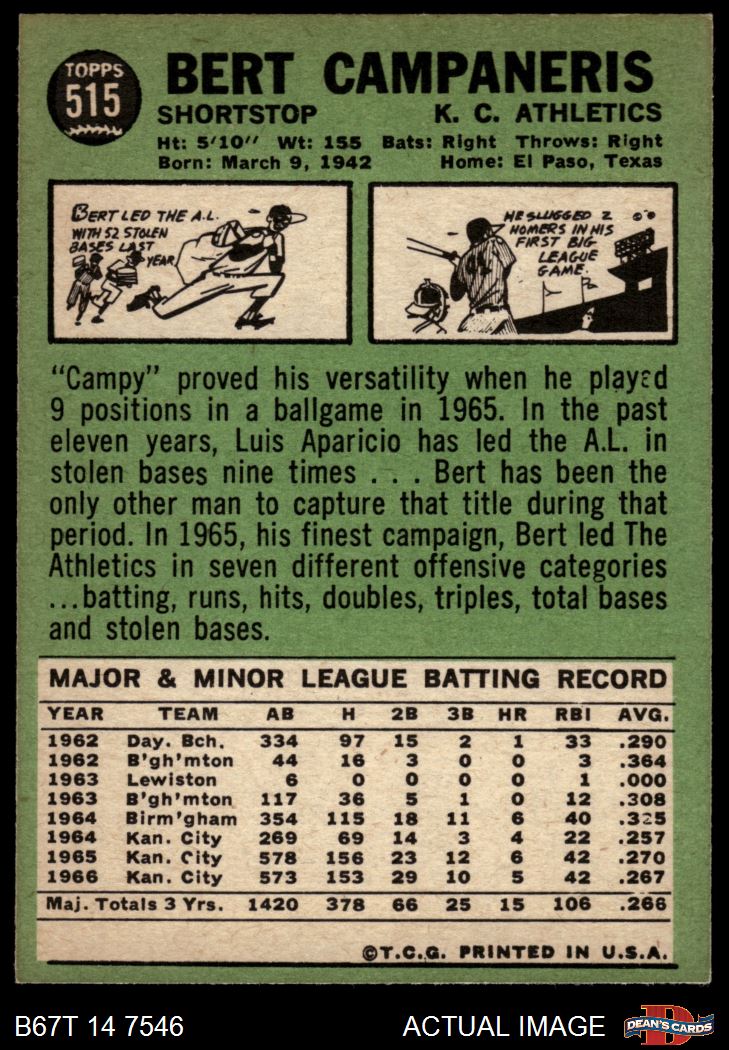 1967 Topps #515 Bert Campaneris 6 - EX/MT