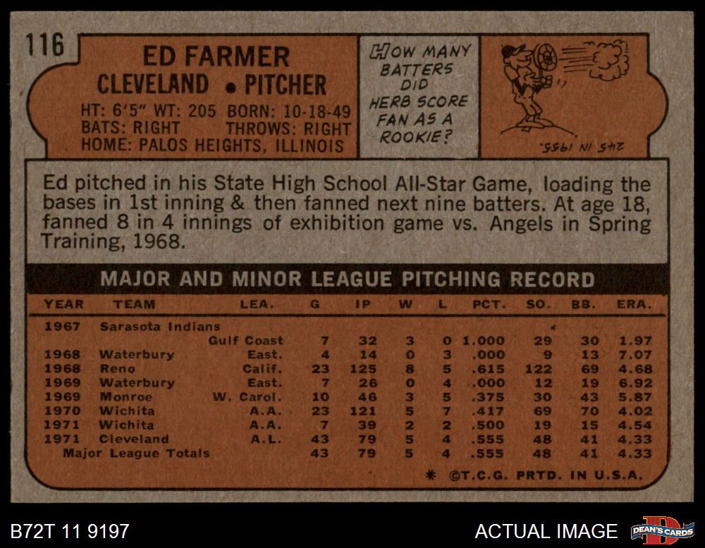 1972 Topps #116 Ed Farmer 6 - EX/MT