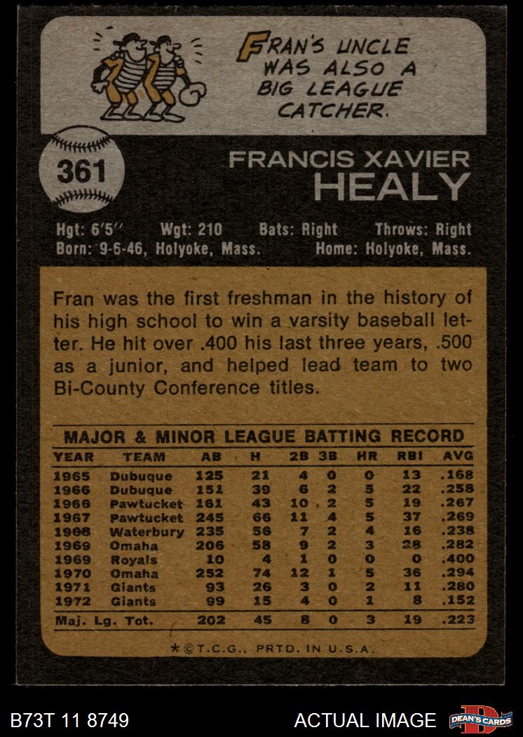 1973 Topps #361 Fran Healy 6 - EX/MT
