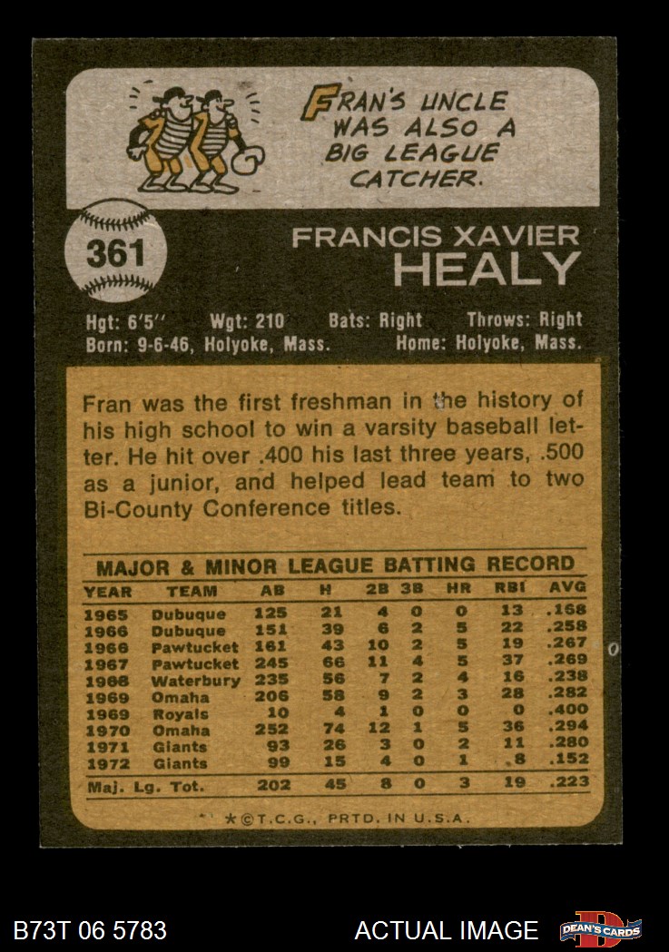 1973 Topps #361 Fran Healy 8 - NM/MT