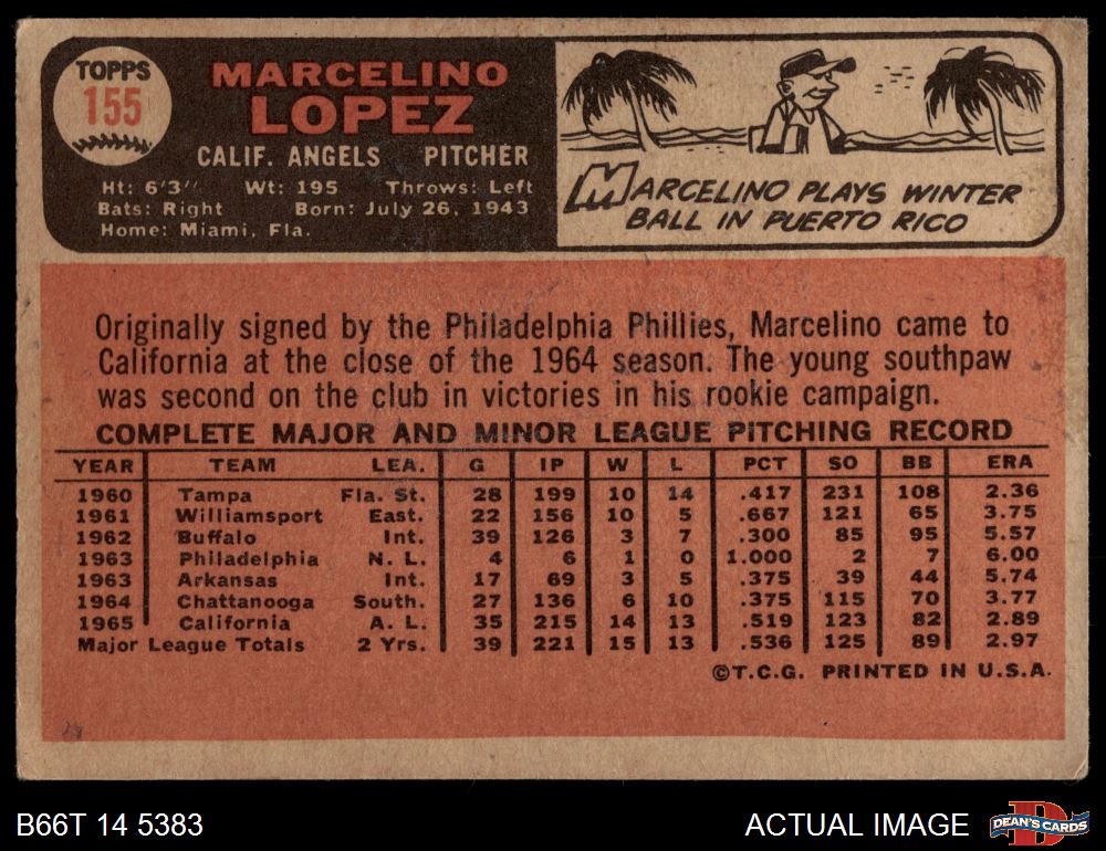 1966 Topps #155 Marcelino Lopez 2.5 - GD+