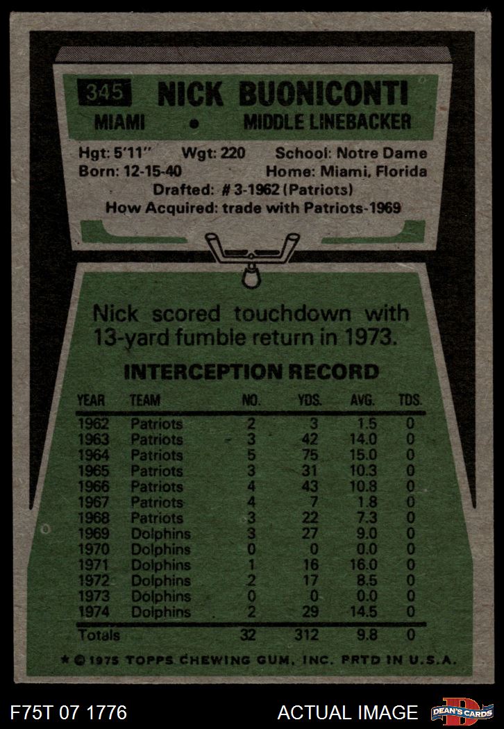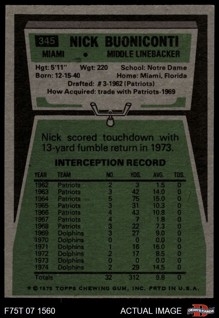 1975 Topps #345 Nick Buoniconti 5 - EX