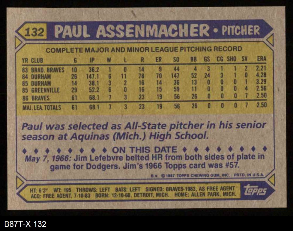 1987 Topps #132 Paul Assenmacher