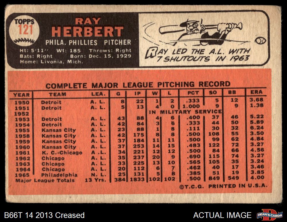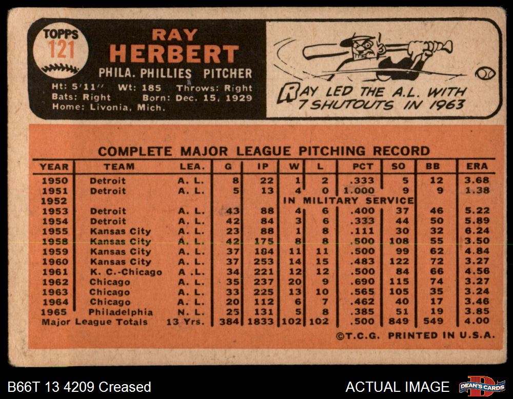 1966 Topps #121 Ray Herbert 1 - POOR