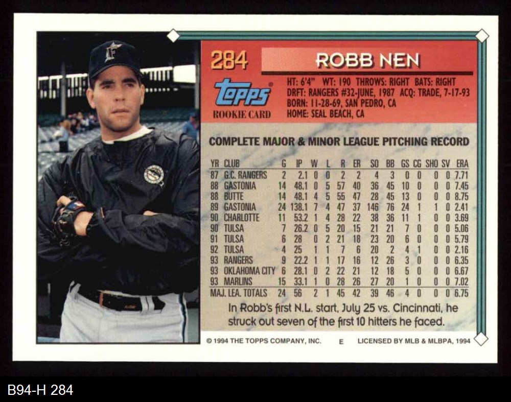 1994 Topps #284 Robb Nen 8 - NM/MT