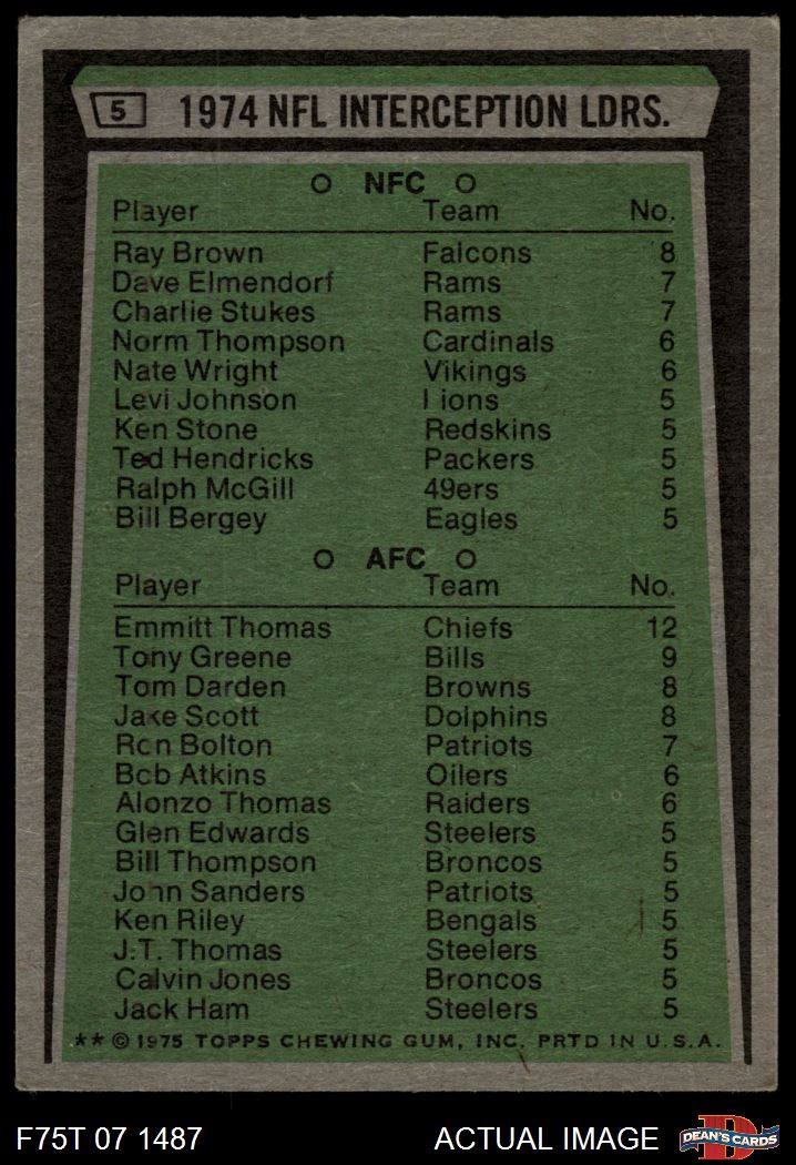 1975 Topps #5 - Emmitt Thomas / Ray Brown Interception Leaders 3.5 - VG+