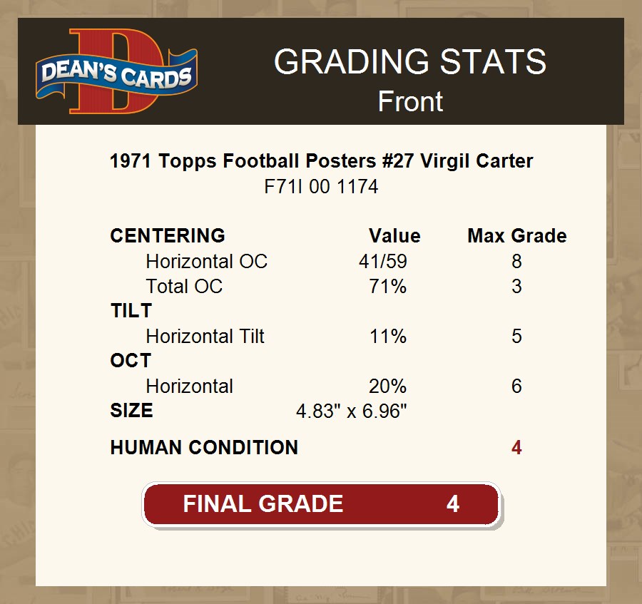1971 Topps Football Posters #27 Virgil Carter 4 - VG/EX