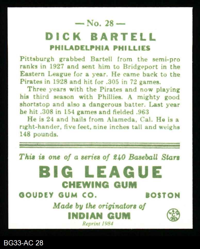 1933 Goudey Reprint #28 Dick Bartell 8 - NM/MT