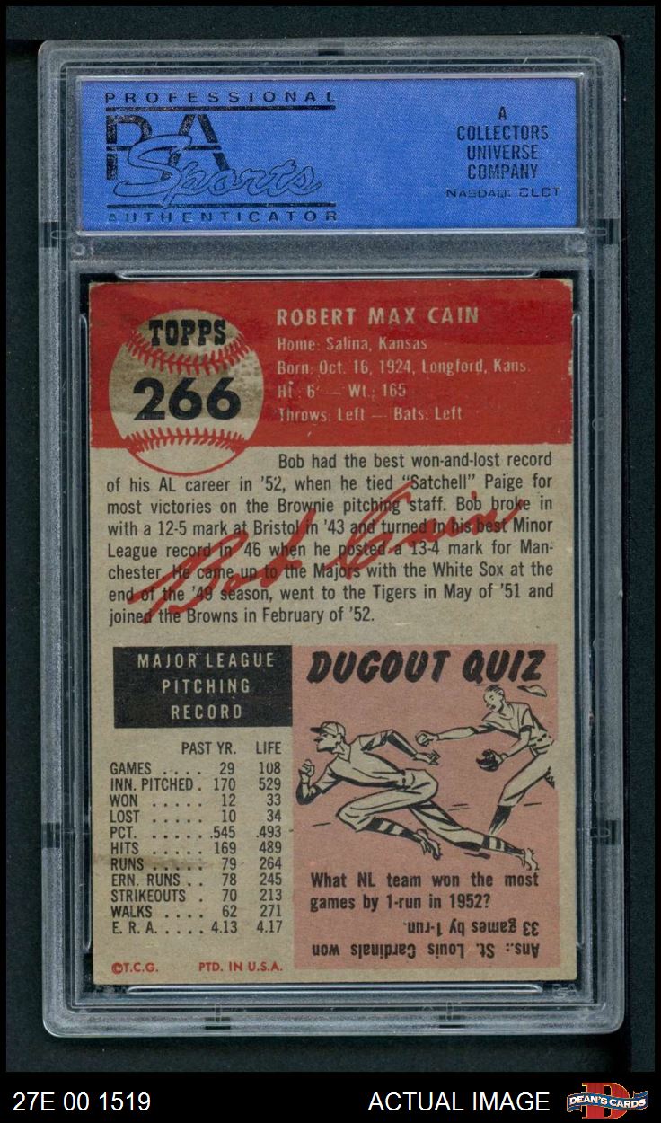 1953 Topps #266 Bob Cain PSA 6 - EX/MT