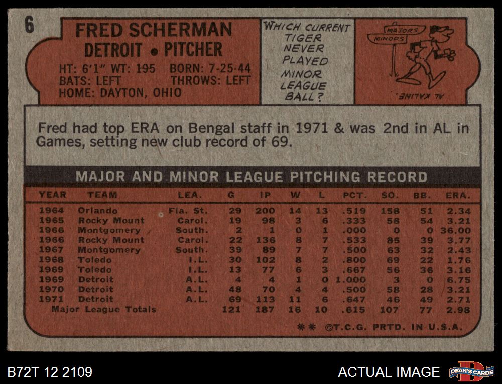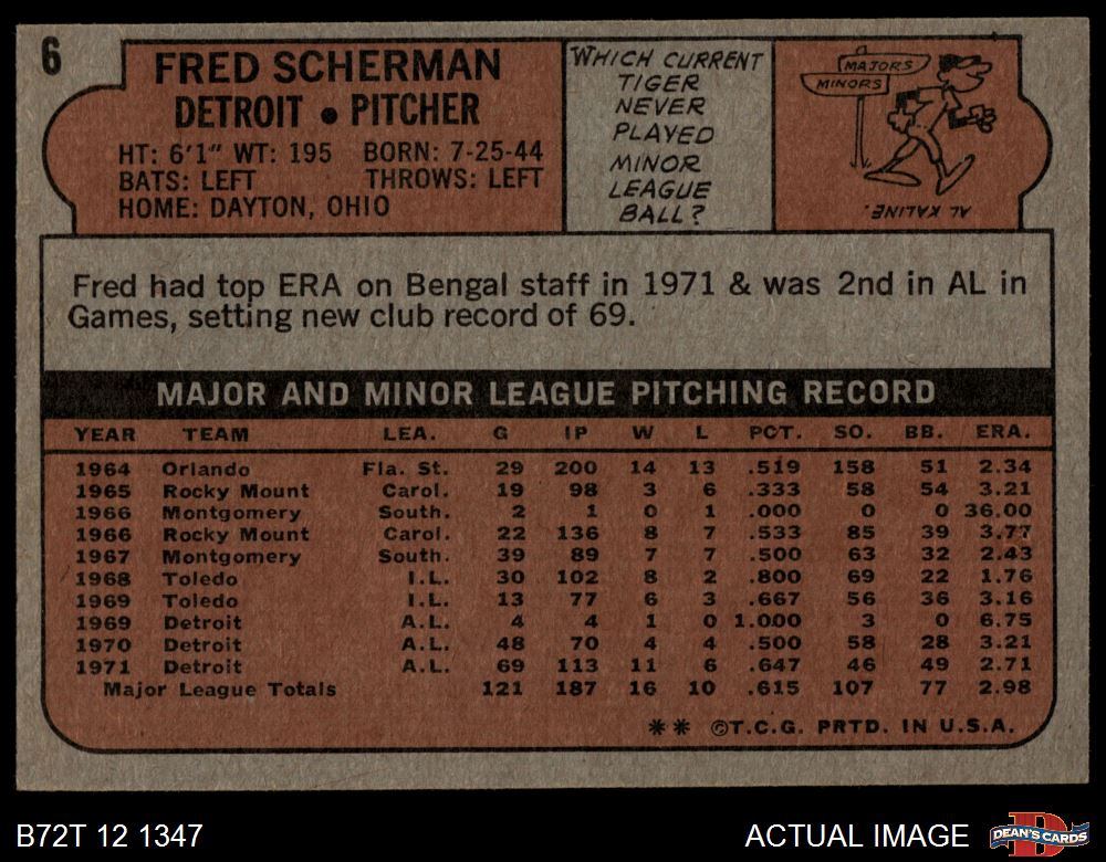 1972 Topps #6 Fred Scherman