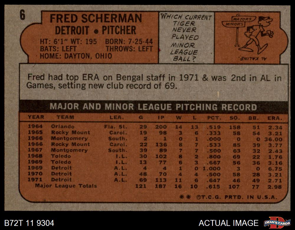 1972 Topps #6 Fred Scherman 6 - EX/MT